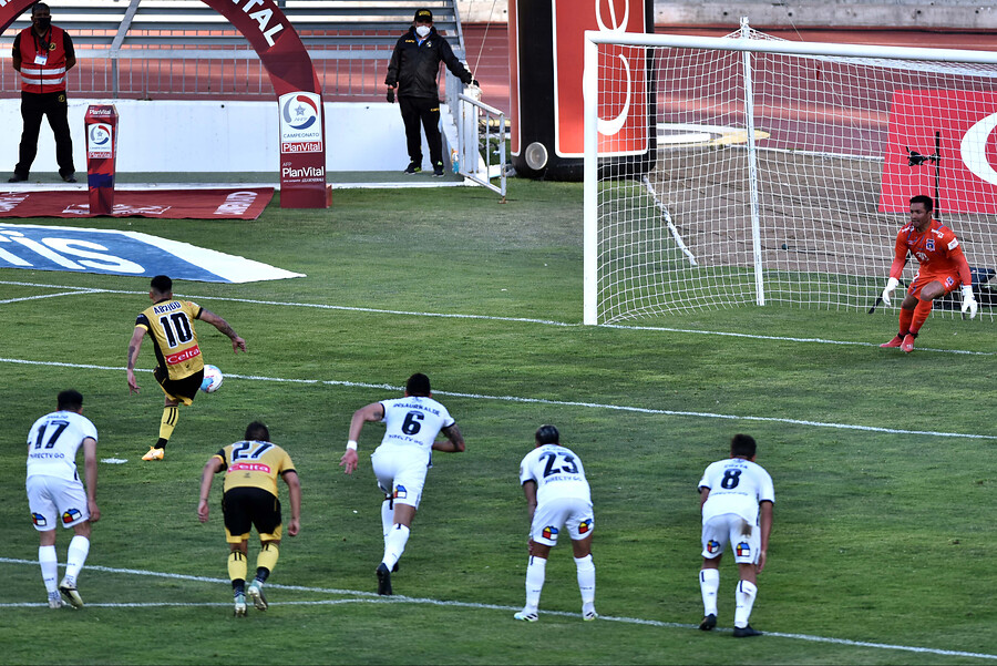 Sin embargo, en una de sus escasas llegadas en el segundo lapso, los nortinos desnivelaron a los 83 minutos con cierta complicidad de la zaga y el arquero de los albos. En una pelota llovida al área, Miguel Pinto salió a cortar, se le soltó la pelota tras el choque con Mauricio Pinilla y Nicolás Berardo definió con un gran zurdazo desde fuera del área.