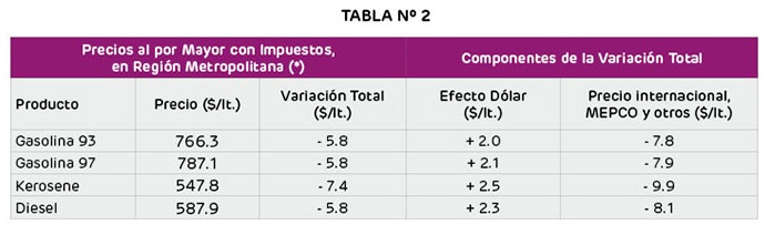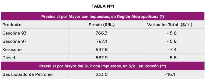 En tanto el diesel experimentará una caída de $5,8, alcanzando los 587,9 pesos por litro; mientras que el gas licuado experimentará una baja de $16,1.