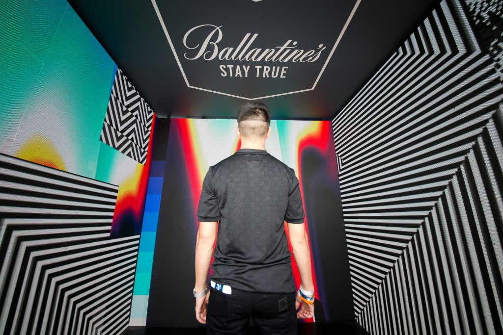 Felipe estuvo estos días en Santiago presentando una intervención en el stand de Ballantine’s del festival Fauna Primavera, el sábado pasado en el Espacio Broadway. Para esta marca, el artista ha diseñado una serie de botellas de edición limitada con sus ejercicios de juegos de percepción y de arte cinético.
