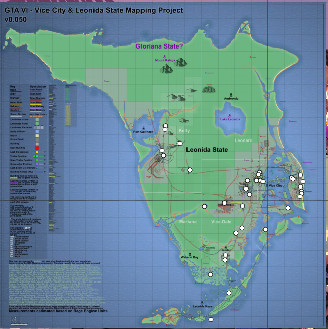 VIMAP es el proyecto que, reuniendo la información de las grandes filtraciones de los últimos años y cruzándolas georreferencialmente con las locaciones vistas en los teasers, ha “mapeado” la ciudad de Vice City y el estado de Leonida.