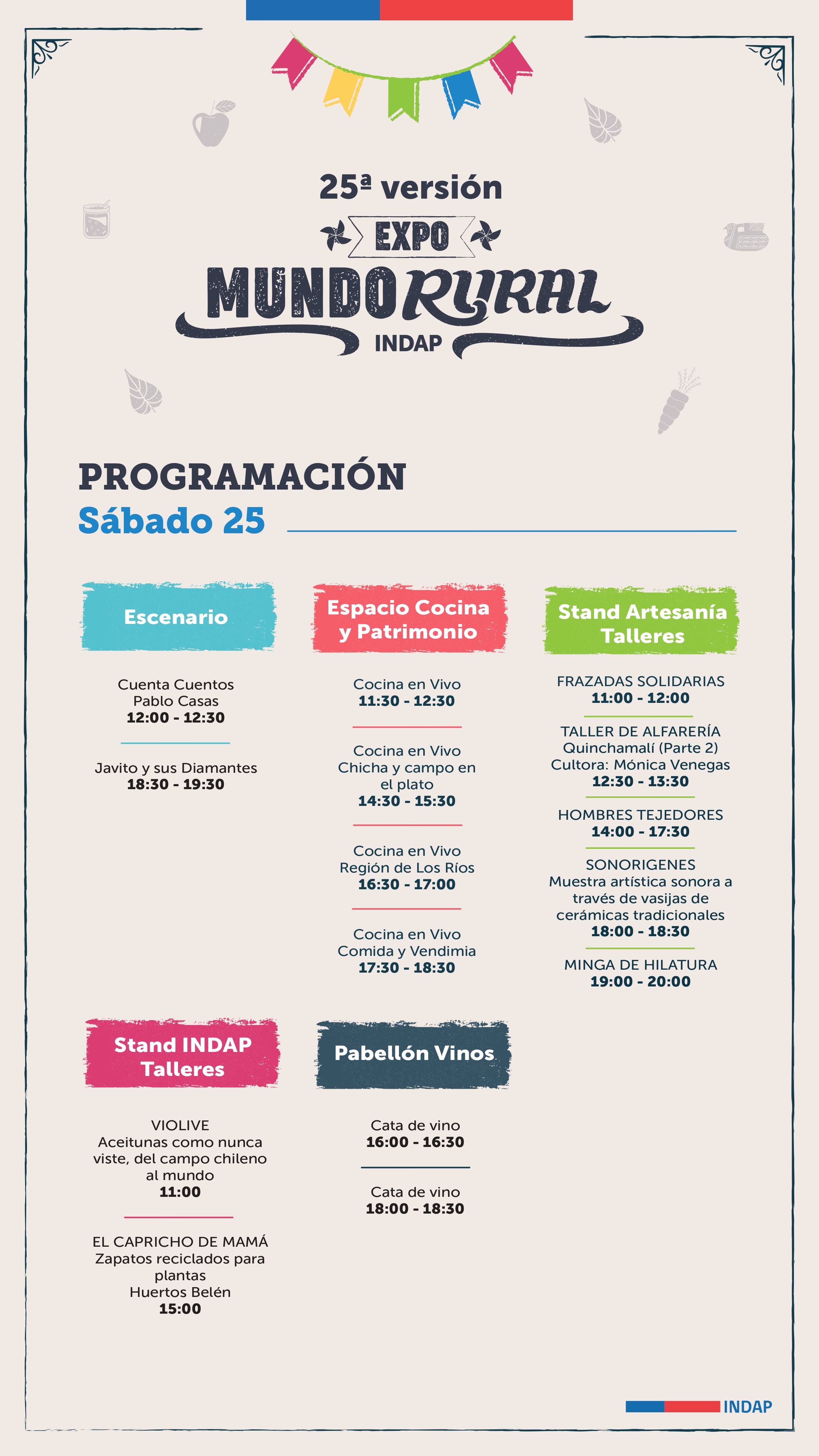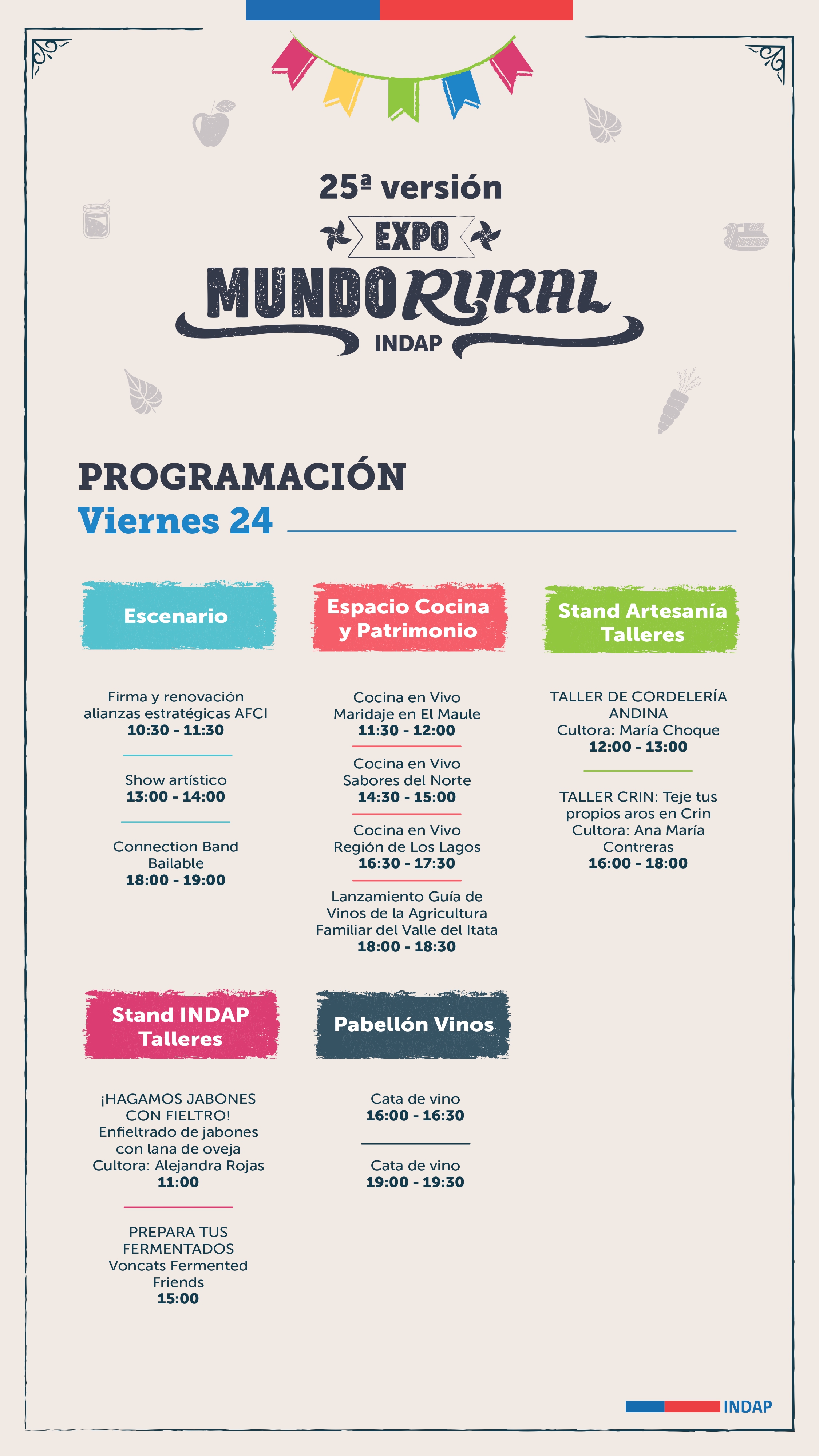 La 25ª versión de la fiesta del campo en la ciudad se realizará entre el 23 y el 26 de octubre en el Parque Estadio Nacional, comuna de Ñuñoa. La entrada es gratuita (debe descargarse en Ticketplus).