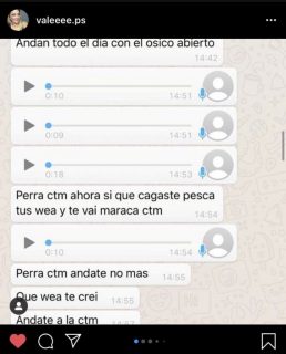 Entre los chats que expuso, se pueden leer frases como “no te voy a pasar ni uno”, o “Yo me voy a ir en la mala con voh”. También insultos como “perra” o “maraca ctm”.
