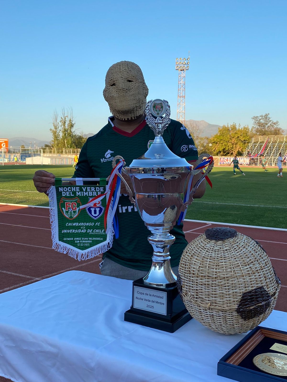 Como parte de la celebración de la Noche Verde del Mimbre, que enfrentó al local Chimbarongo FC con el equipo juvenil de la Universidad de Chile, el equipo radicado en la Región de O’Higgins presentó al que será uno de sus compañeros (o “mascotas”) más fieles: “Mimbreman”.