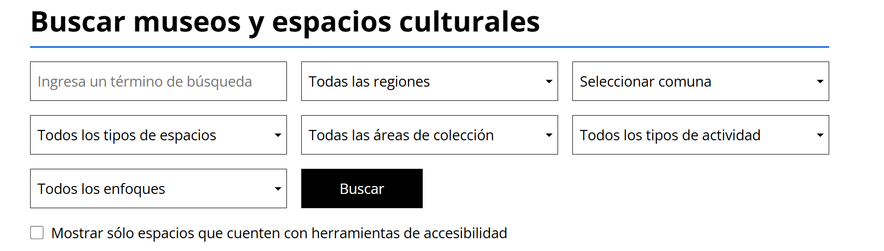 - En esta herramienta se puede filtrar por tipo de espacio, enfoques, regiones, comunas, áreas de colección y tipos de actividades que se realizarán ese día.