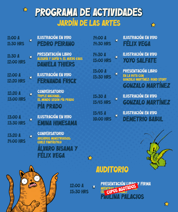Desde las 11:00 los amantes de los comics y mangas podrán disfrutar de cerca el trabajo de diversos autores en boca de ellos mismos, con dibujantes creando en vivo, otros firmando sus obras y presentciones exclusivas.