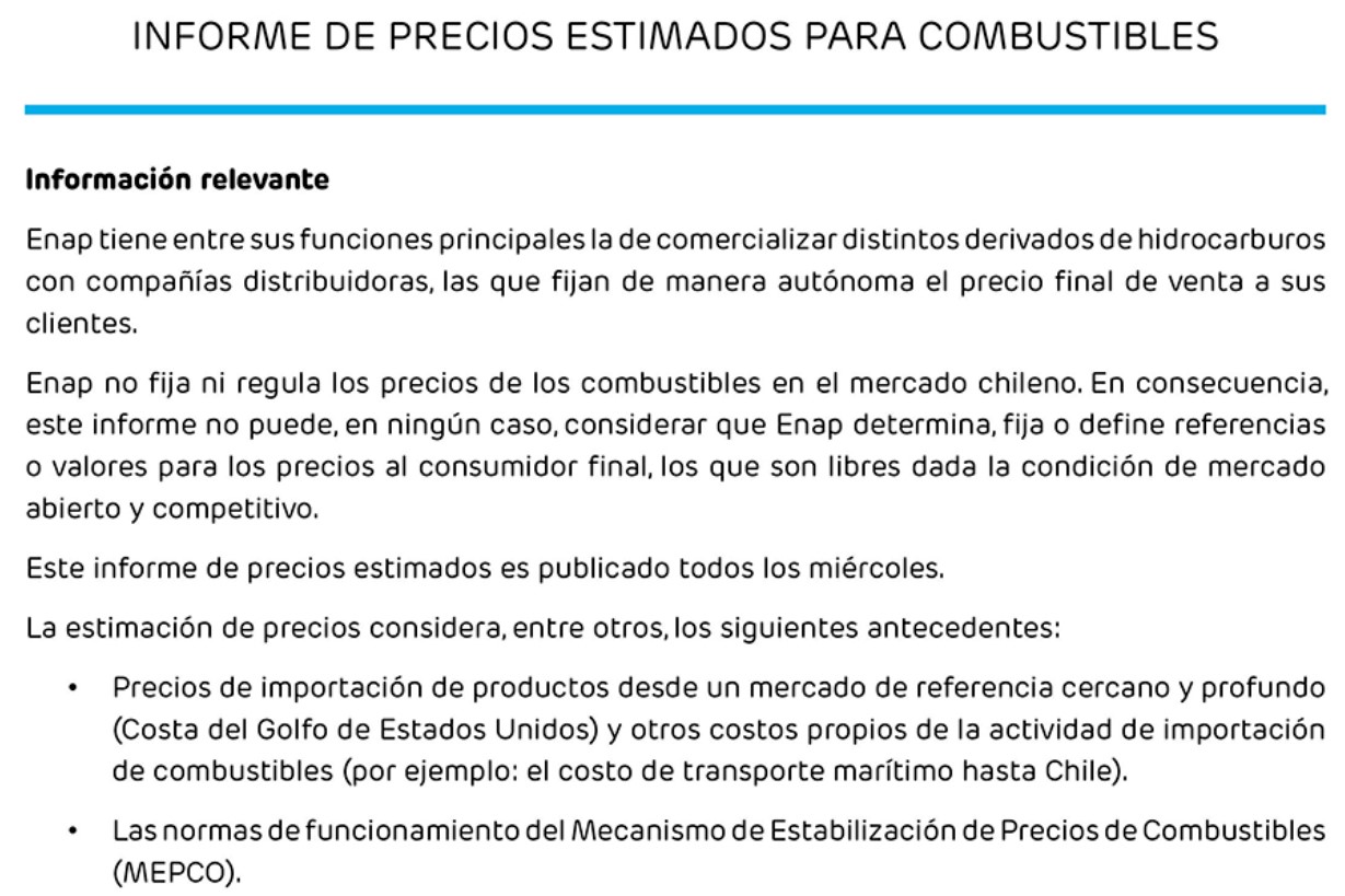Es importante mencionar que ENAP no regula ni fija los precios de los combustibles en el mercado chileno.