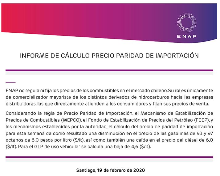 La tarde de este miércoles la Empresa Nacional del Petróleo (ENAP) dio a conocer las modificaciones que experimentarán los precios de los combustibles durante esta semana.