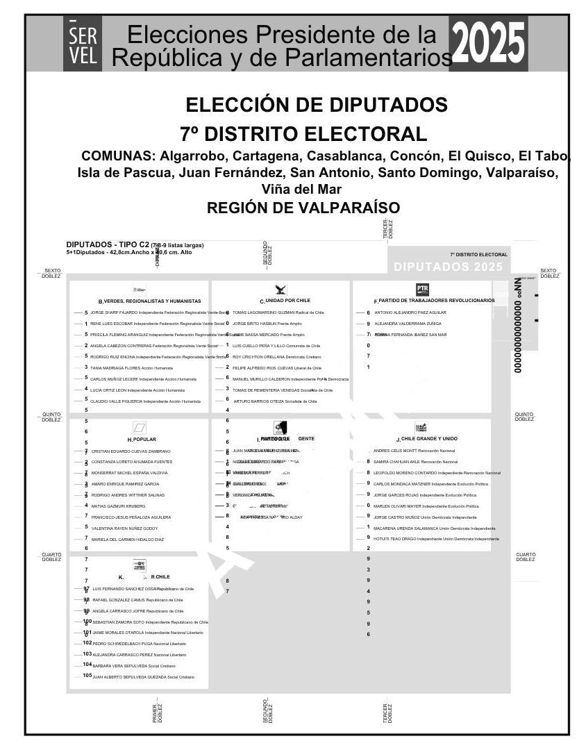 A continuación, se presentan las listas y candidaturas correspondientes al Distrito 7, según la papeleta oficial publicada por el Servel: