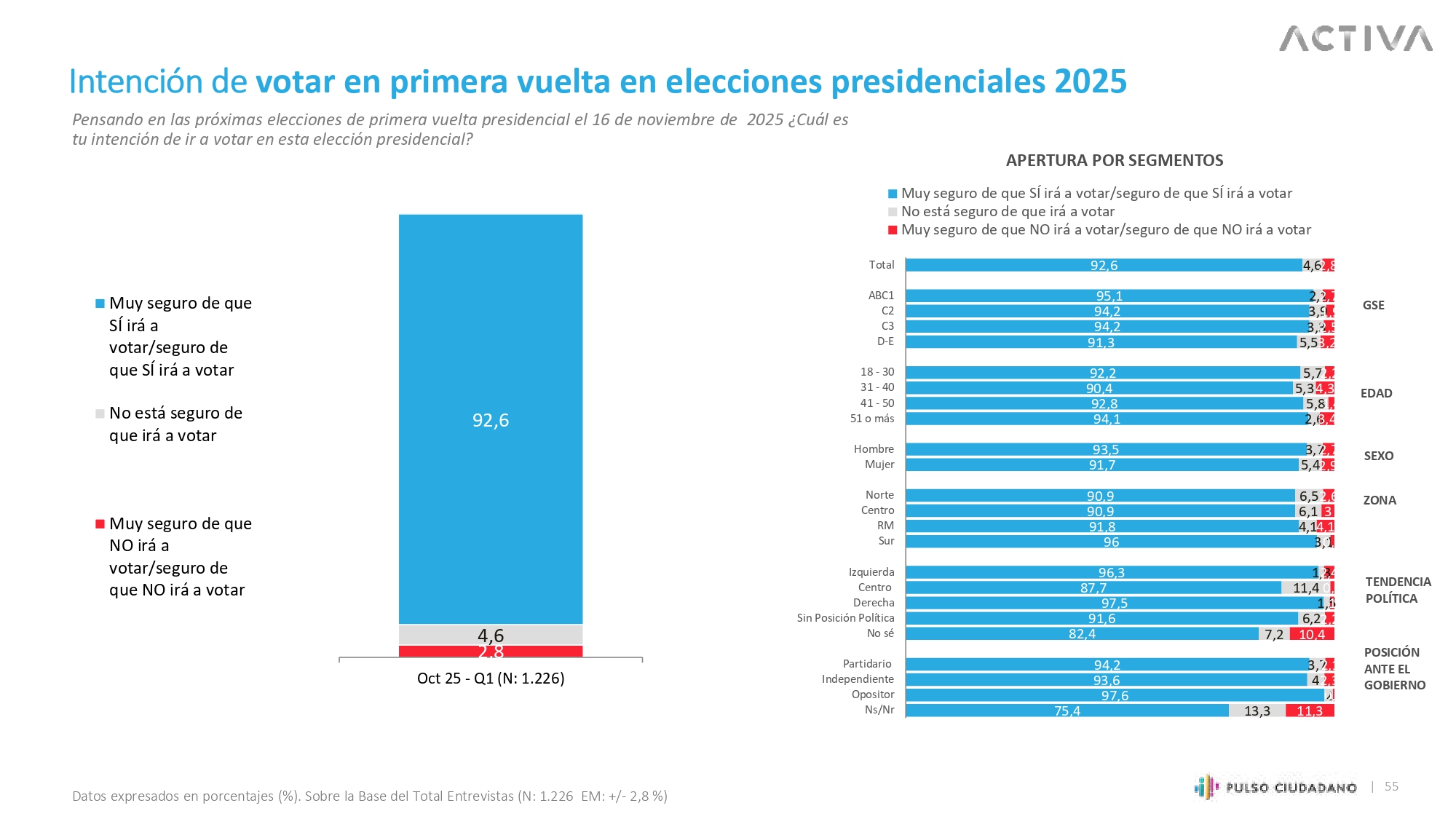 Consultado por el perfil del “votante obligado”, Cavieres detalló que realizaron un seguimiento en los comicios pasados y describió que se trata de segmentos populares que se autodenominan sin posición política.