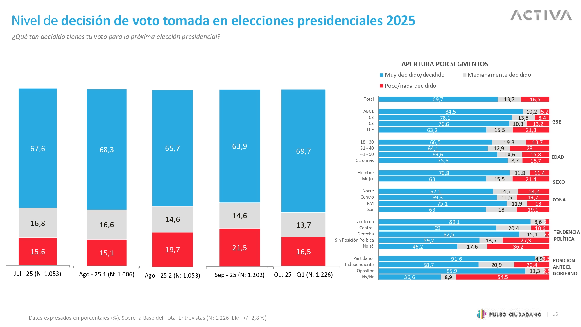 Al analizar este grupo en la actualidad, señaló que se mantiene el mismo nivel socioeconómico, con cerca del 40% que declara indefinición política.