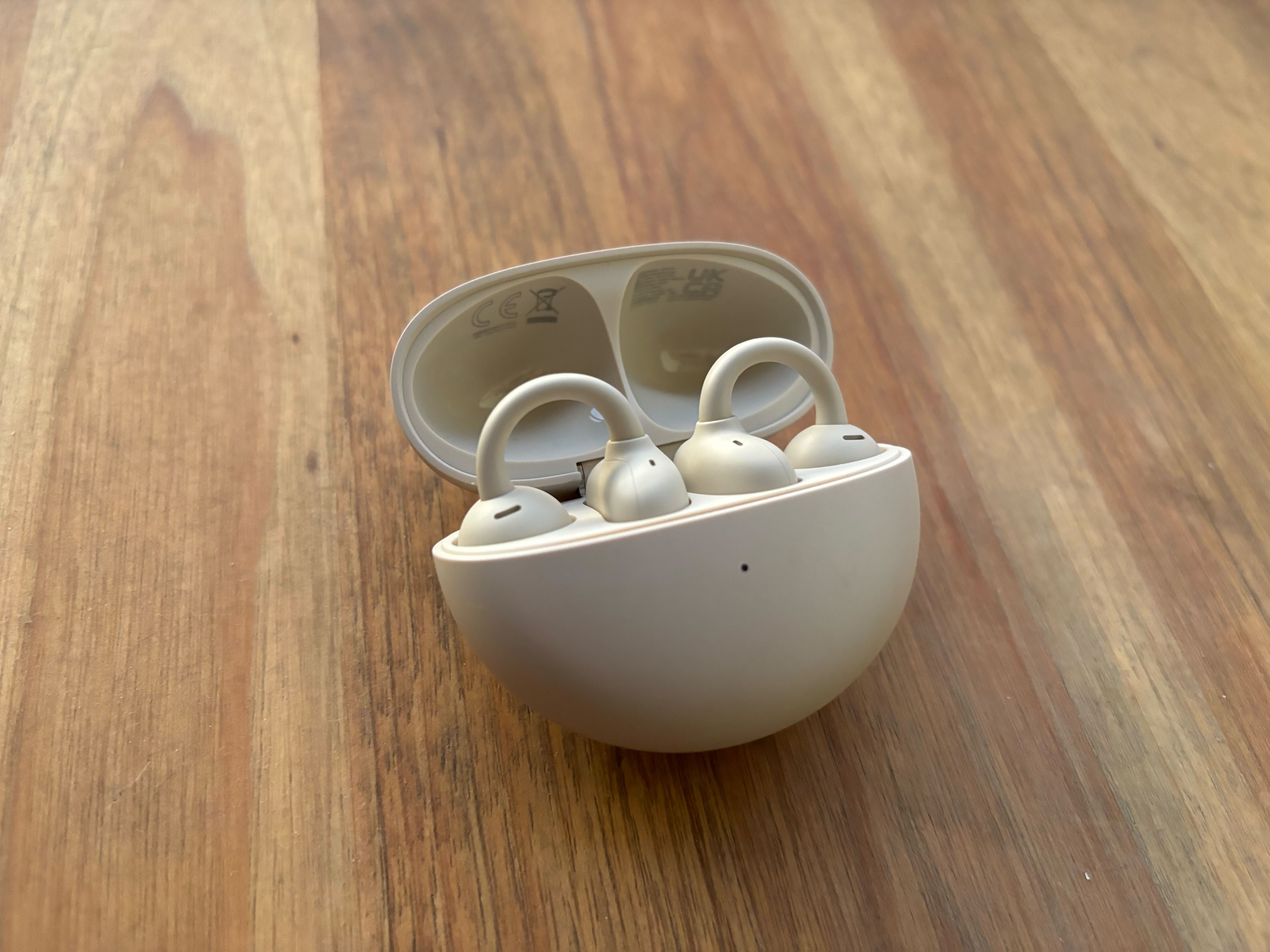 El estuche de los FreeClip resalta por su diseño curvado y extremadamente ligero, el cual pude transportar fácilmente en el bolsillo de mis chaquetas o pantalones. En la parte frontal tiene una luz LED multicolor que nos indica el estado de carga de la batería interna.
