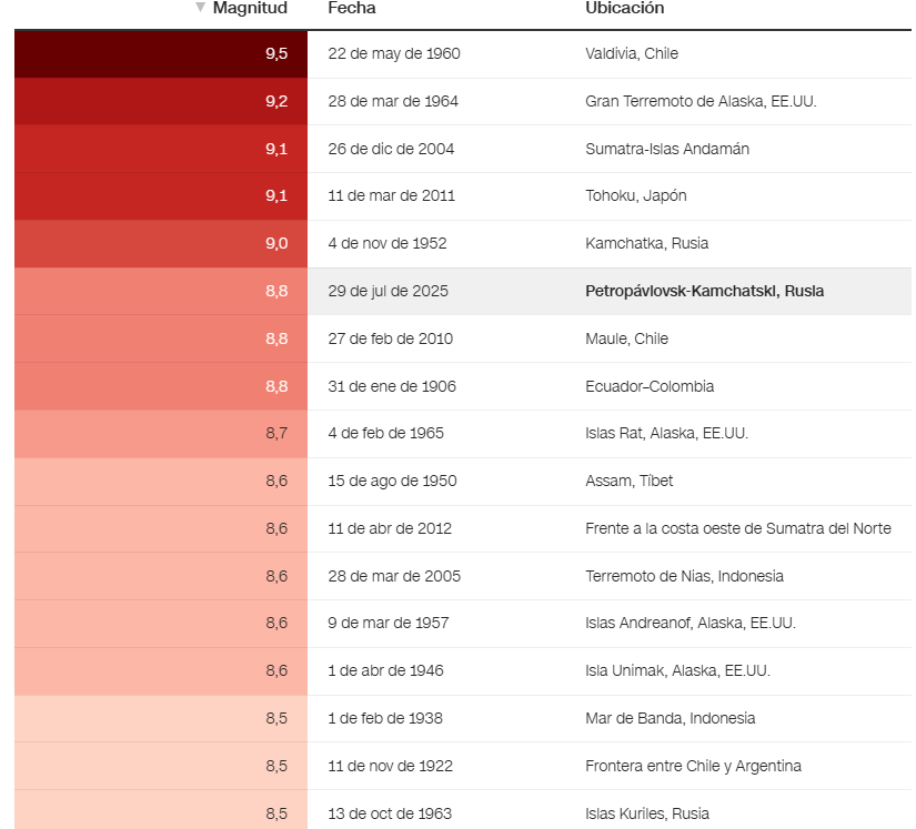 Un potente terremoto sacudió este martes a Rusia, alcanzando una magnitud que lo posiciona entre los más intensos de los que se tienen registro a nivel mundial.