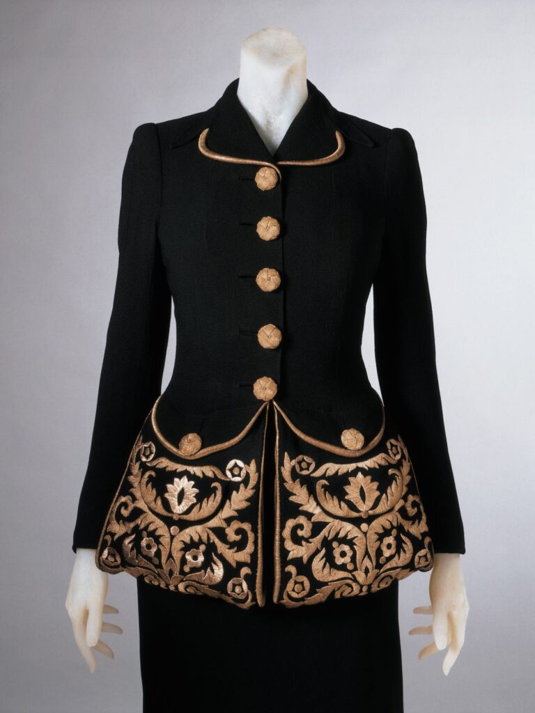 La espaciosa chaqueta de esmoquin de guerra de Elsa Schiaparelli estará en exhibición en la exposición “Boom: Art and Design in the 1940s” del Museo de Arte de Filadelfia de abril a septiembre. Cortesía del Museo de Arte de Filadelfia.