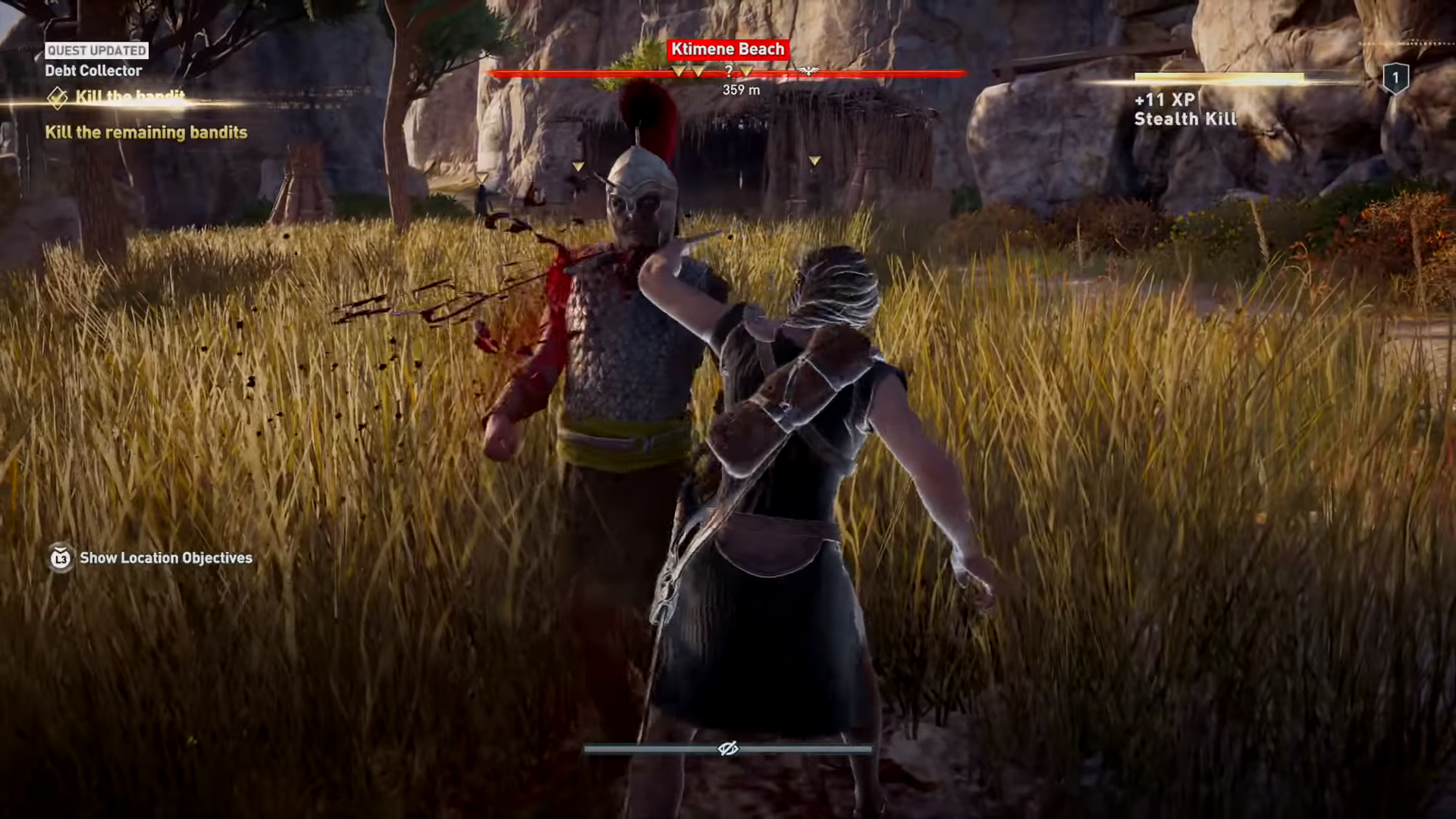 La libertad de elegir se expresa en casi todos los demás aspectos del juego: personalización, con armas y armaduras equipables de diferentes rarezas en tu inventario; en el árbol de habilidades, que se canjean en puntos al subir niveles durante la aventura –¿Recuerdas “This is Sparta!”? Puedes desbloquear esa patada-; y en el mismo estilo de juego sobre el cual te quieres perfilar: caza, combate o asesinato.