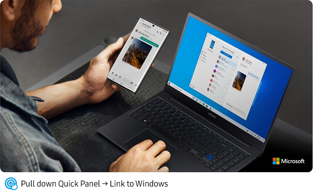 Con ello, los usuarios pueden conectar el Note10+ al PC para cosas como duplicar la pantalla de su teléfono, enviar y recibir mensajes y ver notificaciones, así como hasta 25 fotos recientes, directamente desde su computador.