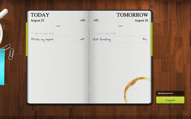 Si eres una fanática de los post-it con mensajitos de cosas por hacer, ¡esta es tu aplicación! En español, “hazlo mañana”, se trata de una agenda digital en que puedes anotar tareas pendientes y organizarlas por días, temas y prioridades. Puedes escribir un conjunto de tareas que debes hacer pronto y solo mantiene dos días (hoy y mañana), para que no te agobies con tanta información. Además, lo que no hiciste hoy, lo pasa automáticamente para mañana para que no se te pase nada. Es gratis y muy simple de utilizar (y la gráfica también nos encantó).