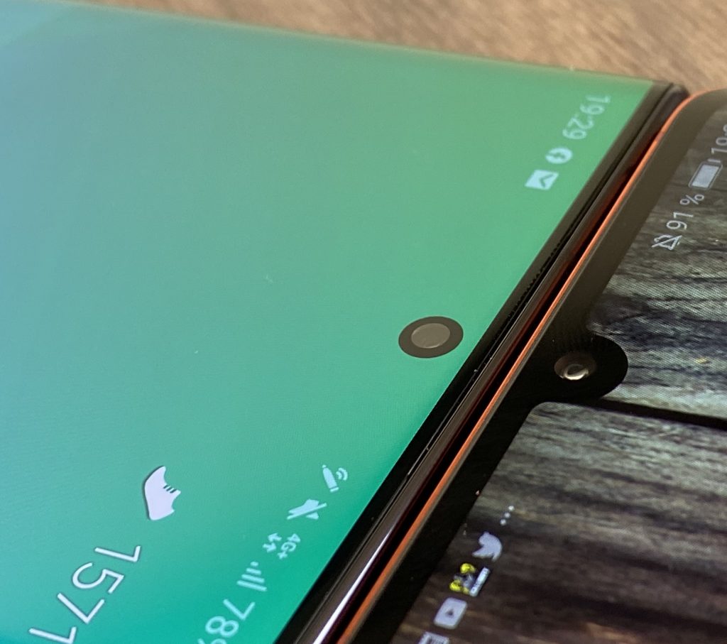 Porque la pantalla de 6,8 pulgadas termina ocupando bordes mínimos. En los costados el diseño es curvo y no tan pronunciado por su delgadez, mientras que arriba y abajo tiene una línea muy acotada, separando completamente el ojo de la cámara frontal.