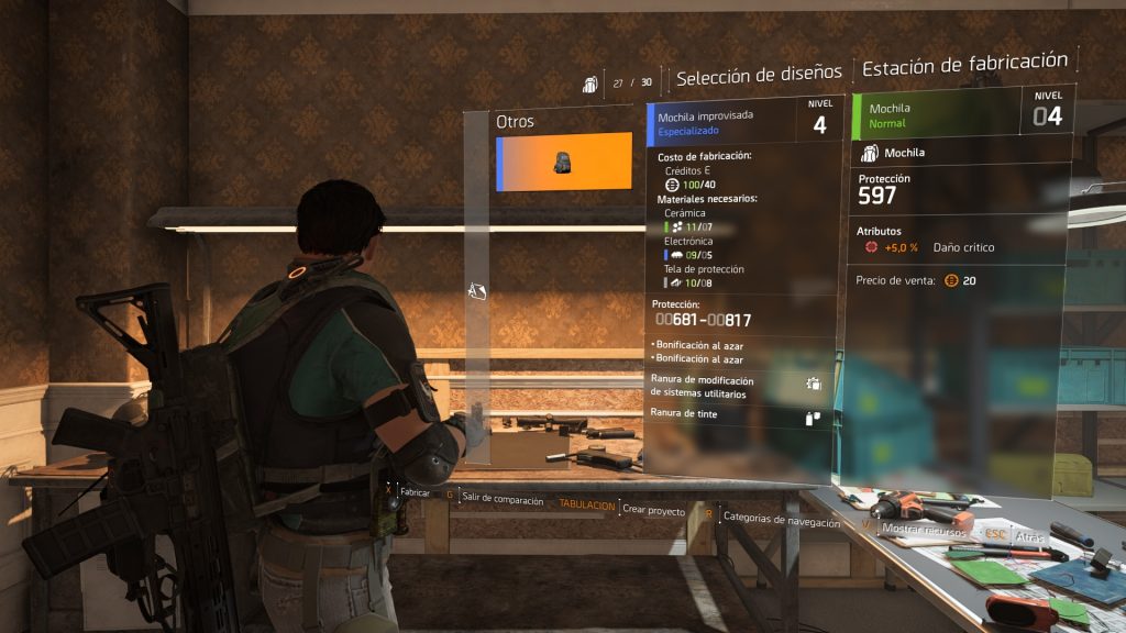 Lo mismo pasa con los elementos más estéticos: guantes, zapatos, mochila, chaleco antibalas, todo aquello tiene estadísticas que gradualmente irán mejorando tus capacidades en combate.