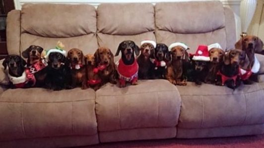Ya es bastante peculiar que alguien tenga 17 perros de mascotas en su casa, pero si esto parece extraño, lo más sorprendente es que su dueño logre hacer que posen no para una si no para varias fotos de Navidad.