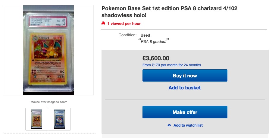 Un ejemplo de esto son las cartas “Shadowless” (sin sombra). En páginas como eBay, los europeos llegan a vender este tipo de cartas por más de £3.000. Es decir, más de CLP 2.000.000.