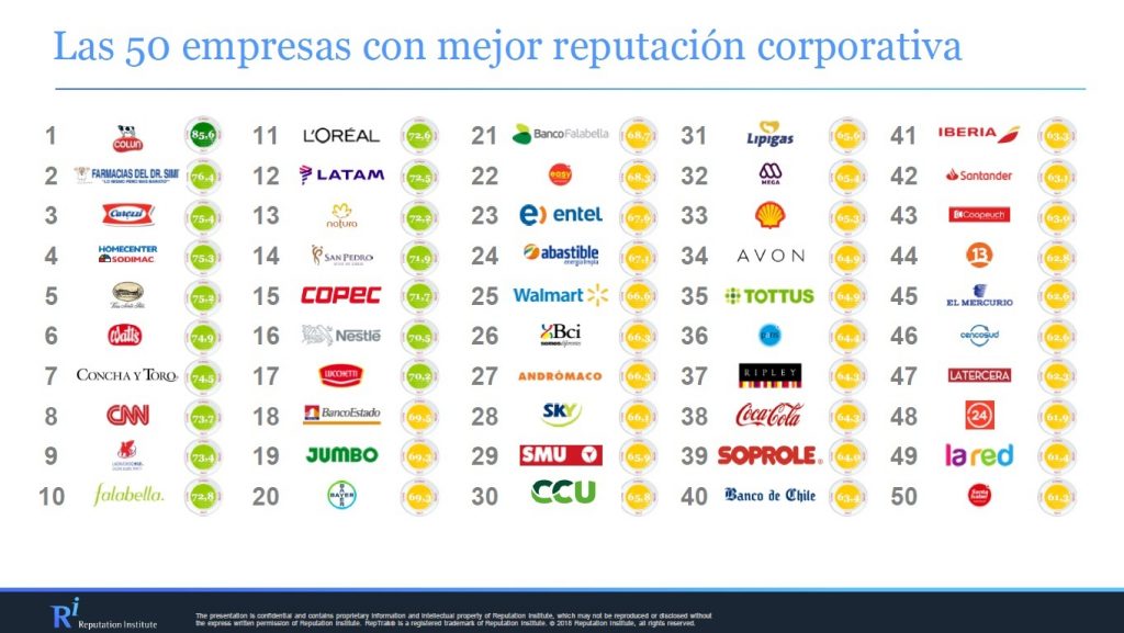 En el caso particular de RepTrak 2019, los factores clave para el análisis de la reputación se basan en la oferta, la innovación, el trabajo, la integridad – ética, la ciudadanía, el liderazgo y las finanzas.
