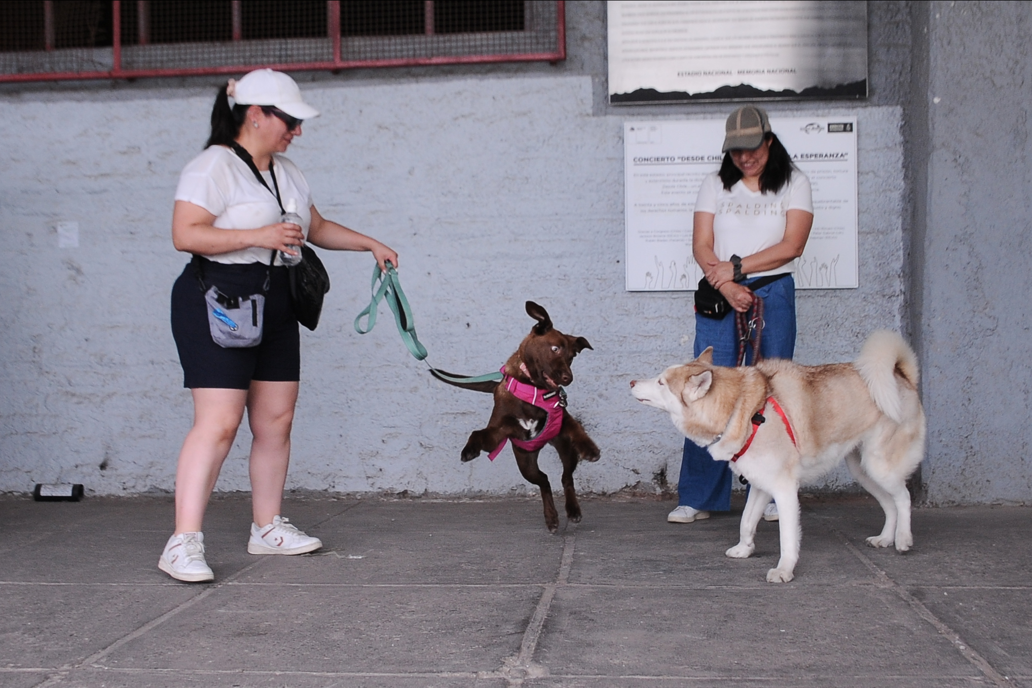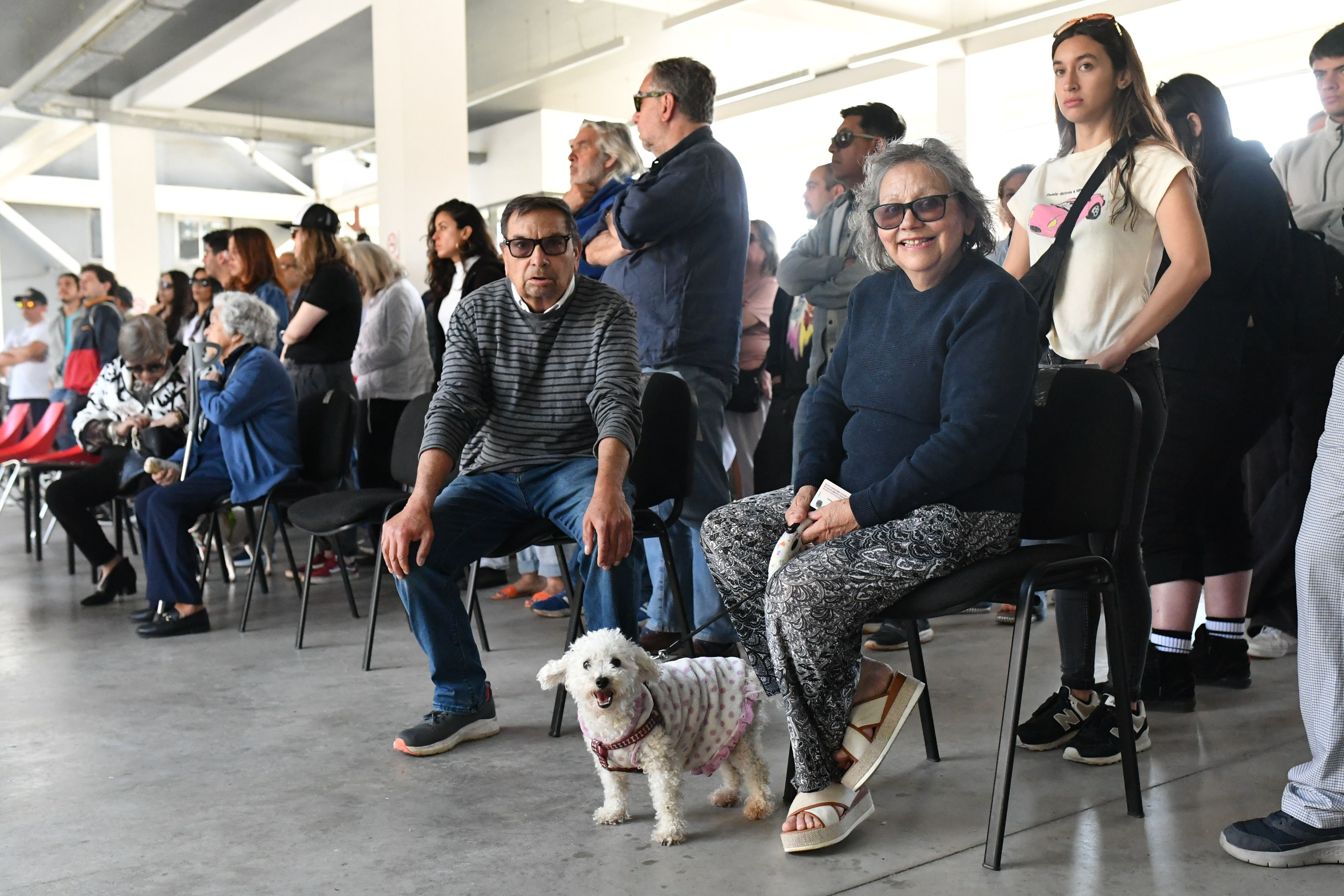 Votantes llegan con sus mascotas al Estadio Nacional, en la comuna de Ñuñoa, para participar en las elecciones presidenciales y parlamentarias de 2025.Crédito: VICTOR HUENANTE / AGENCIAUNO