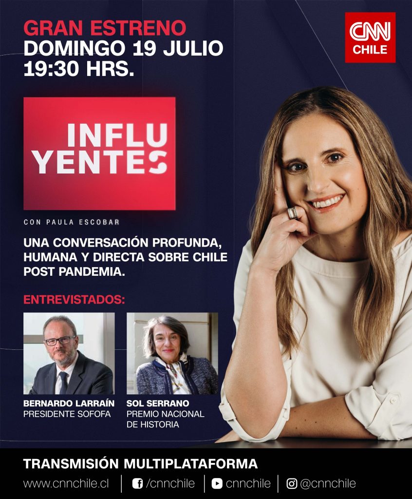 Este domingo a las 19:00 horas se transmitirá el primer capítulo de Influyentes, el nuevo programa de conversaciones de CNN Chile, que contará con la conducción de la periodista Paula Escobar.