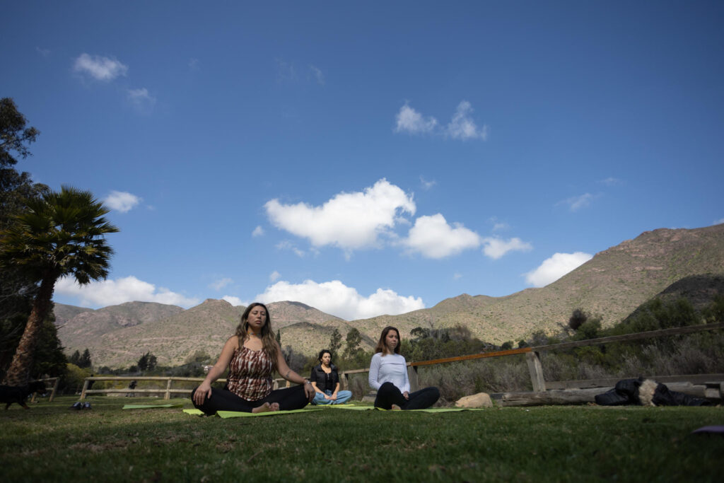 Fotografía del 21 de agosto del 2024 de una practica de yoga, en Vicuña (Chile). EFE/Ailen Díaz